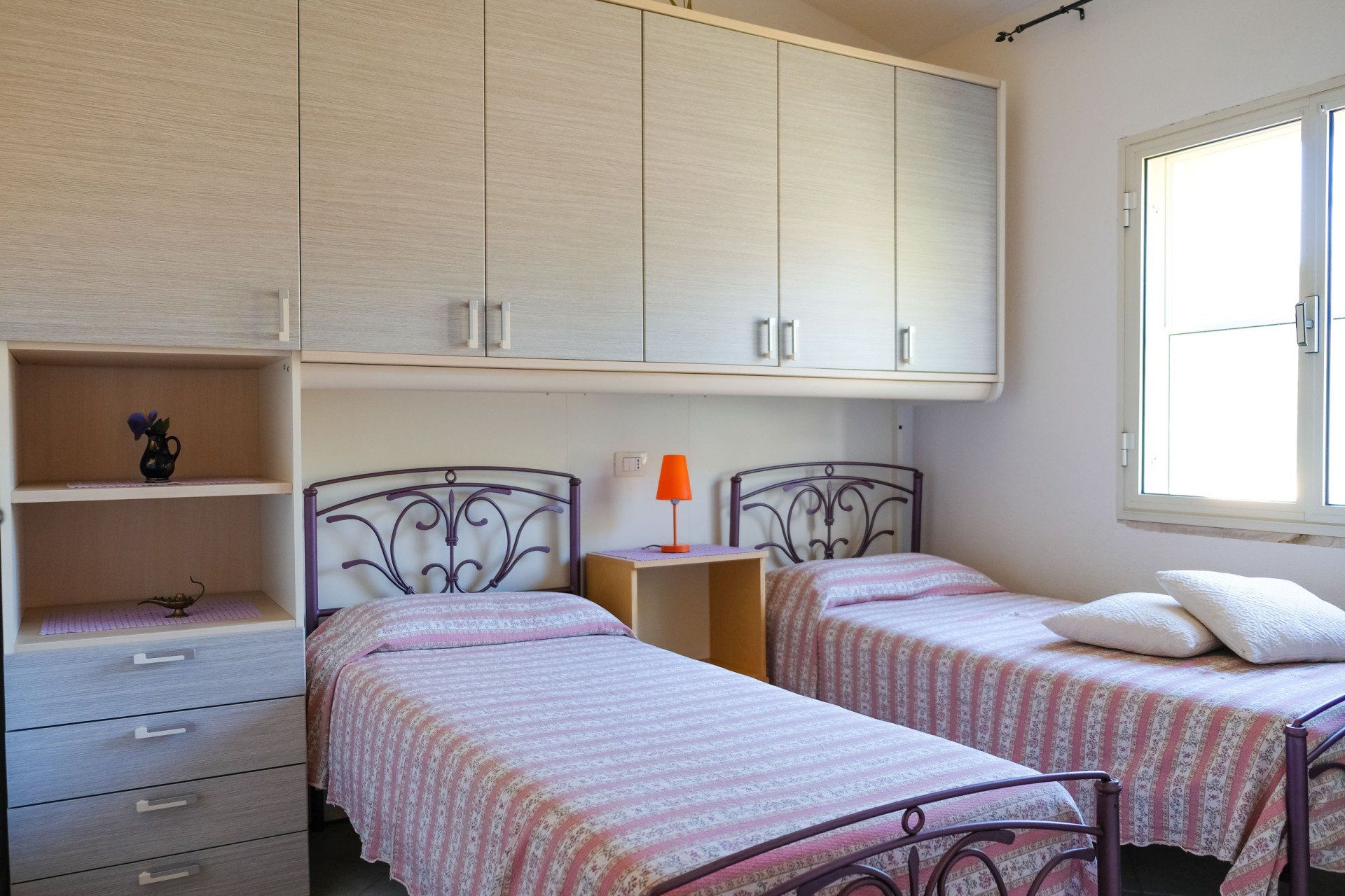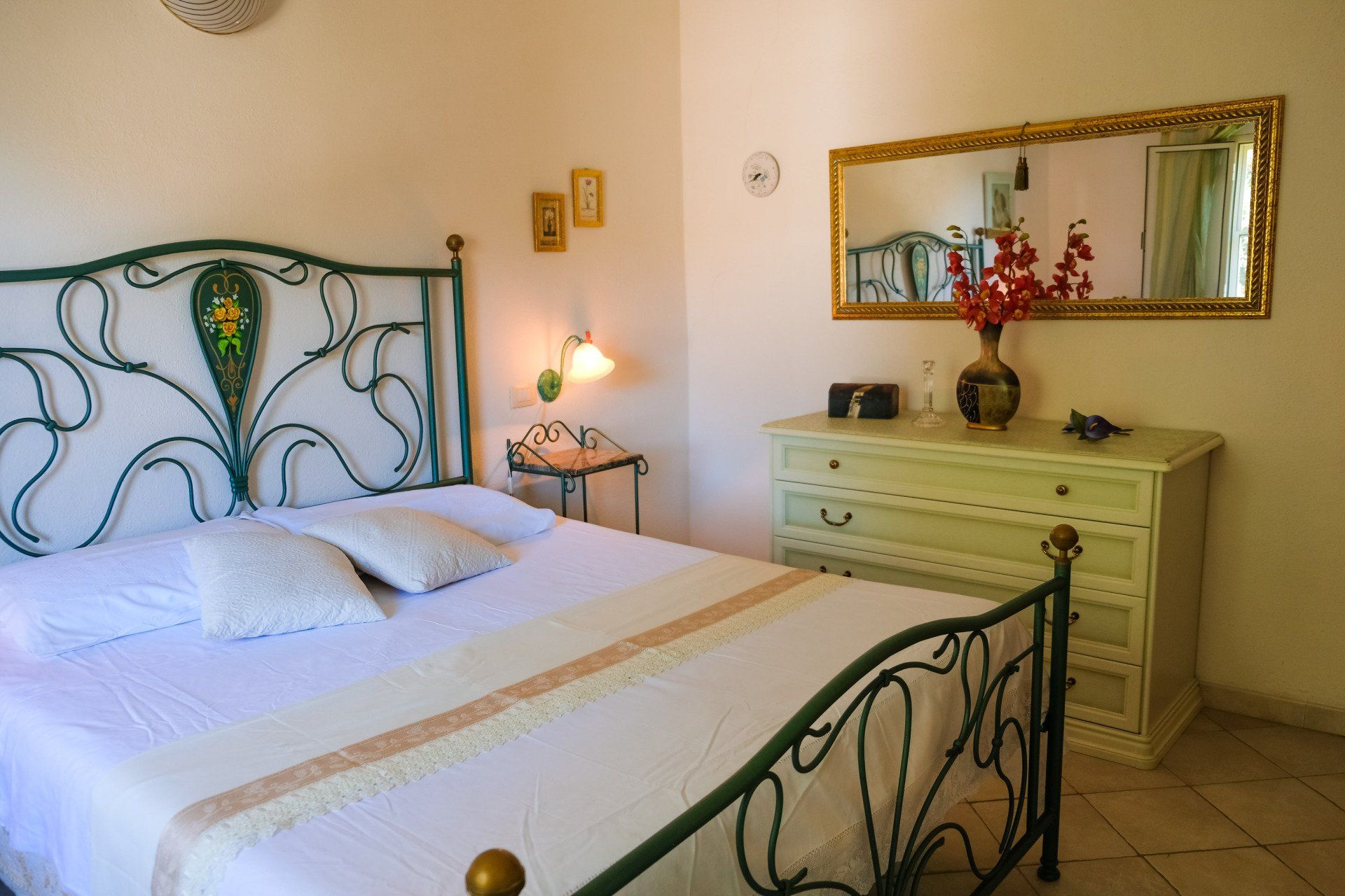 Costruita nel 1980 è stata successivamente rinnovata nel 2011, arricchita nello stile e nei comfort per garantire un soggiorno piacevole e rilassante a famiglie. Posta su un unico piano, è organizzata con una cucina indipendente, un soggiorno, una camera da letto matrimoniale e una singola. Fa da contorno un ampio giardino, completo di angolo barbecue e di posto auto, con vista panoramica sul mare.